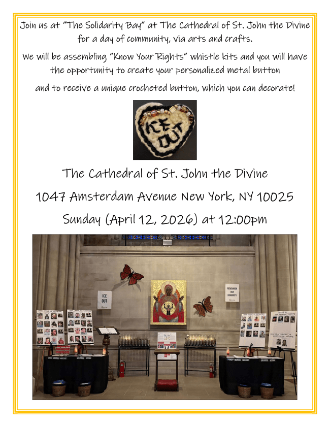 for our neighbors and partners: St. Mary’s Center, people experiencing homelessness, for all refugees, Unity Fellowship Church NYC, Forces of Nature Dance Theatre, African Services Committee, the 26th precinct, and Old Broadway Synagogue.