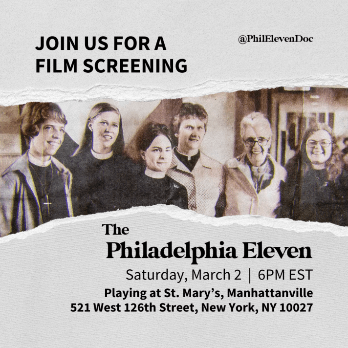 | 200th Anniversary Next Event: The Philadelphia Eleven Saturday, March 2 @6pm Since 1823, when St. Mary’s Church was established by both Jacob Schieffelin and Hannah Lawrence Schieffelin, St. Mary’s has a proud history of acknowledging the strength of women in church life. On March 2, we will celebrate a key moment in that history: St. Mary’s Church sponsoring two of the first women to be ordained in the Episcopal Church. Come join us for a special Women’s History Month screening of the Philadelphia Eleven: the story of the act of ecclesial disobedience that forever changed the face of the Episcopal Church. Co-sponsored with Episcopal Divinity School (EDS). |