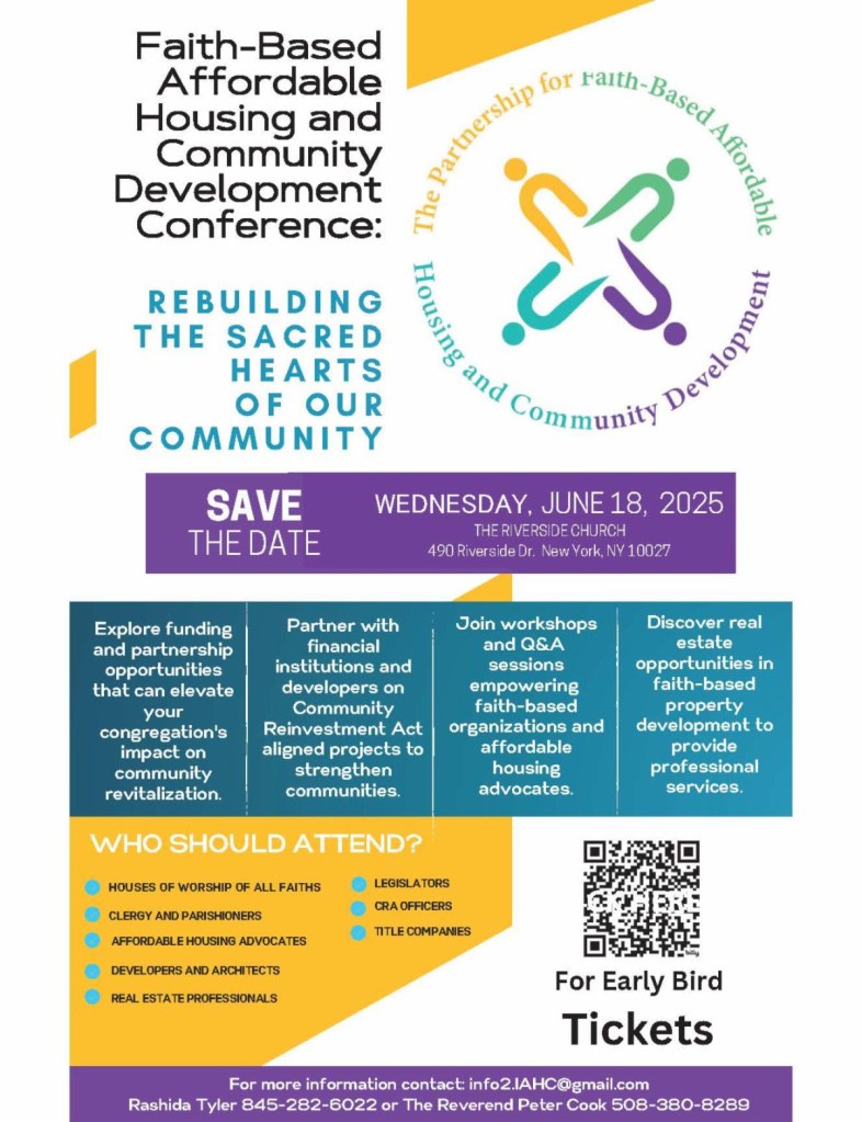 We are excited to see you at Rebuilding the Sacred Hearts of Our Communities, a day dedicated to a statewide initiative that guides faith-based institutions in New York on maximizing their real property for their self-determined goals. With an emphasis on affordable housing and homelessness alleviation, we also provide resources to pursue broader property goals.