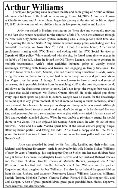 In Memory of Arthur Williams
